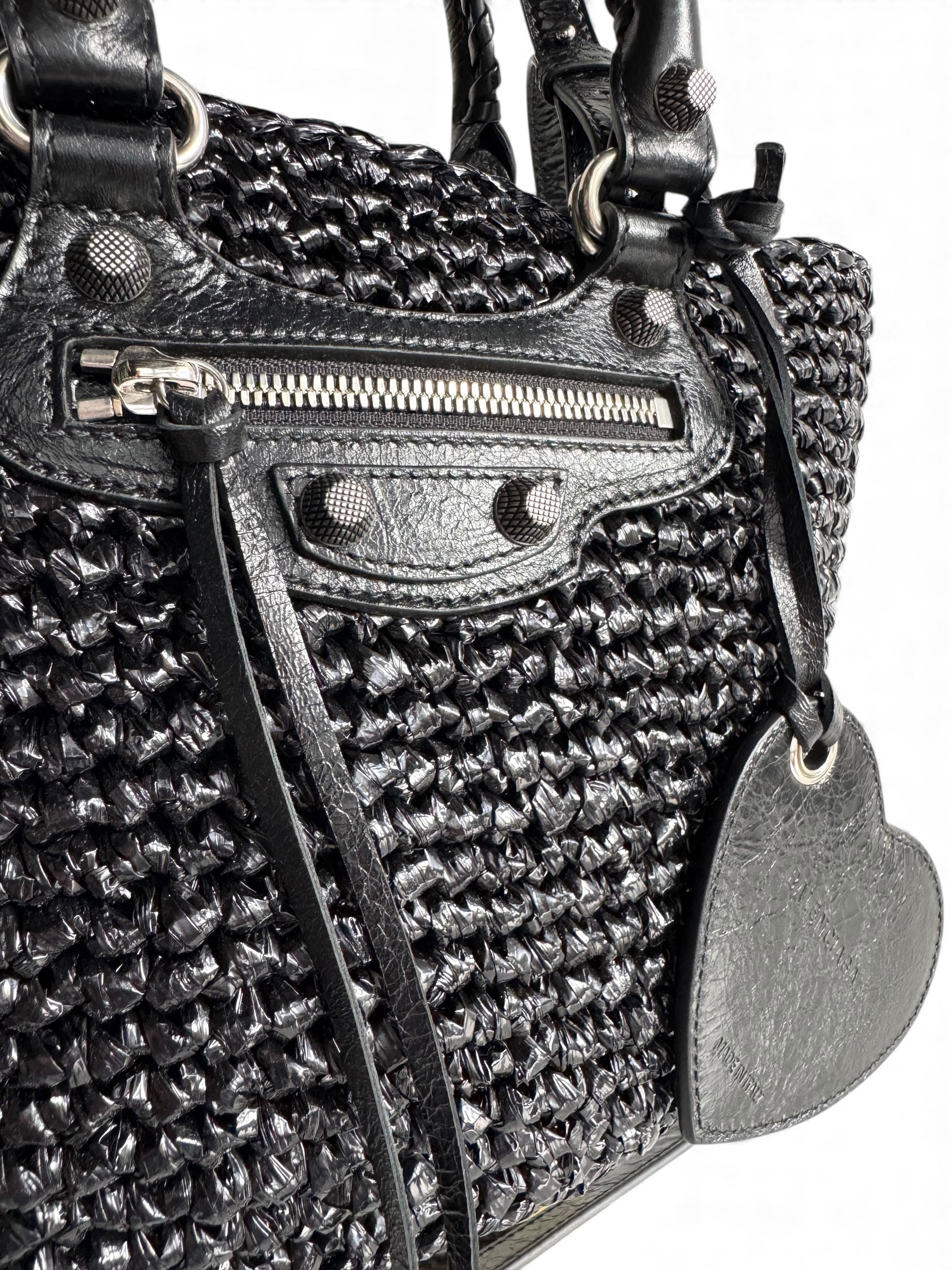 BALENCIAGA Nylon Raffia Le Cagole Small Panier Tote