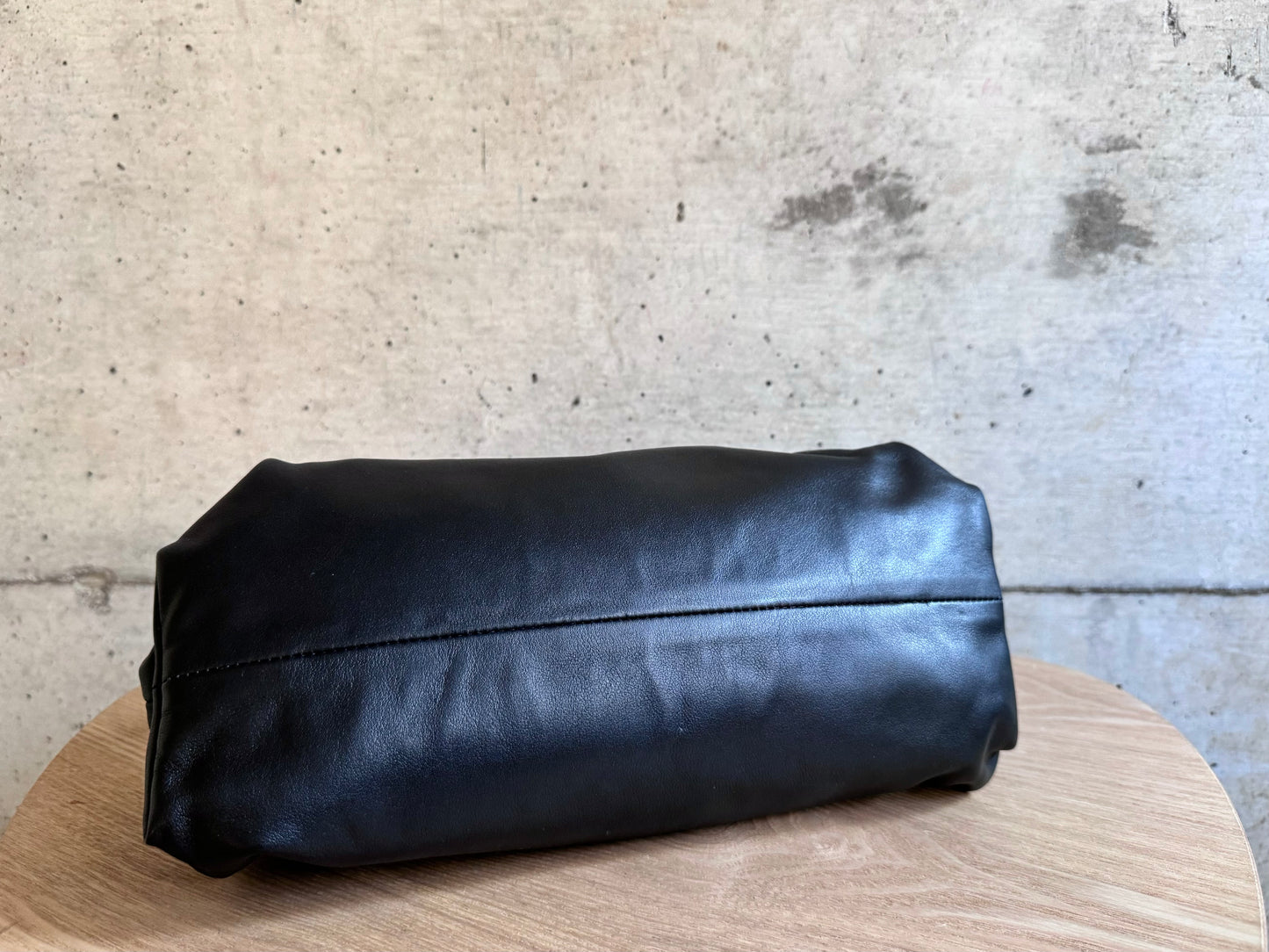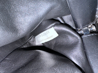 Description: This is a genuine BOTTEGA VENETA Calfskin “The Pouch Chain” in black. This highly sought-after shoulder bag is made from soft black calfskin leather. It has a ruched, magnetic frame opening that leads to a matching leather interior, along with a bold silver chain strap. Experience the stylish elegance of Bottega Veneta with this standout shoulder bag!