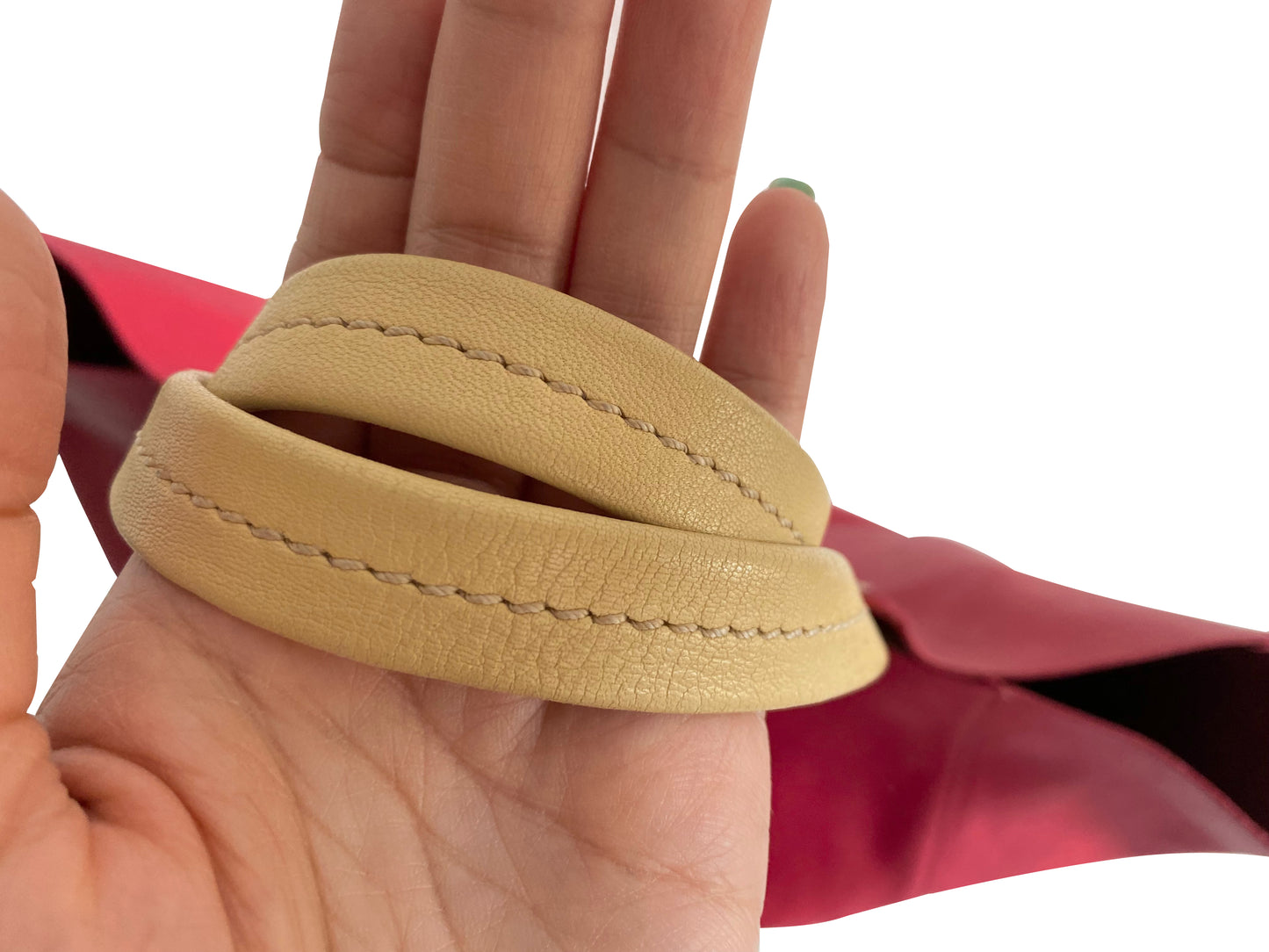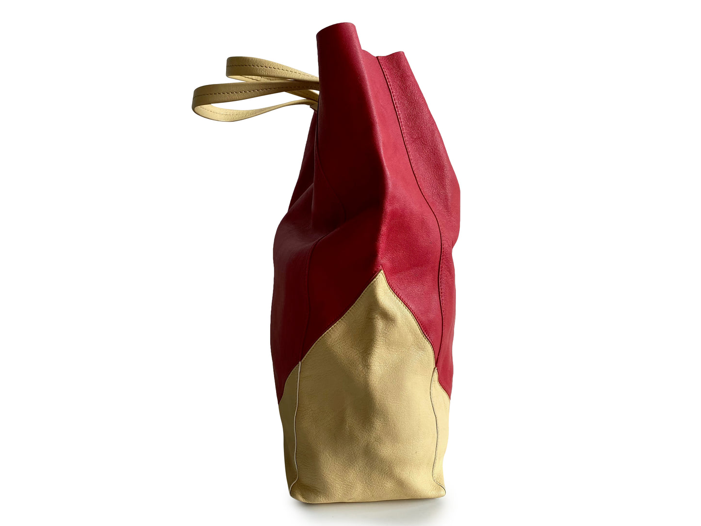 Description: This is an authentic CÉLINE Lambskin Vertical Bi-Color Coeur Cabas in Beige and Red. This stylish large tote is beautifully crafted of soft and supple lambskin leather in two tones. The bag features flat beige leather strap top handles. The top is open to a spacious with a zippered pocket.
