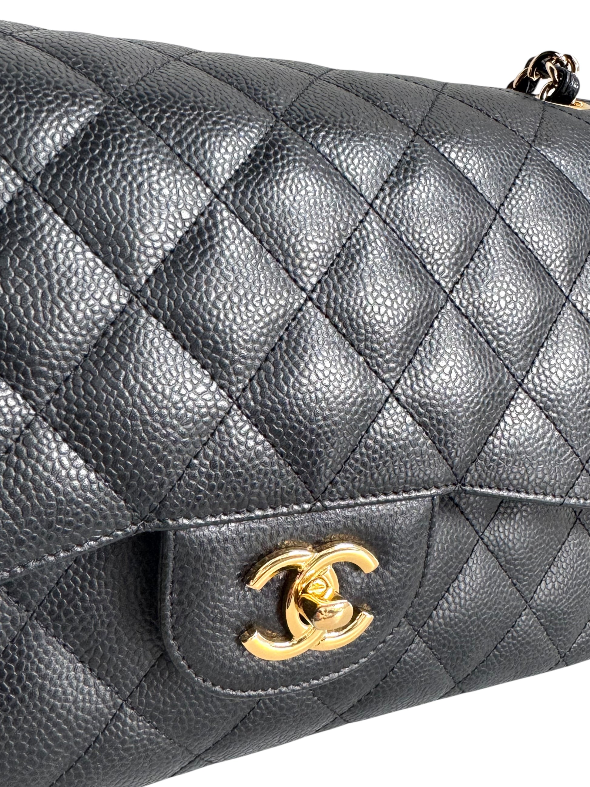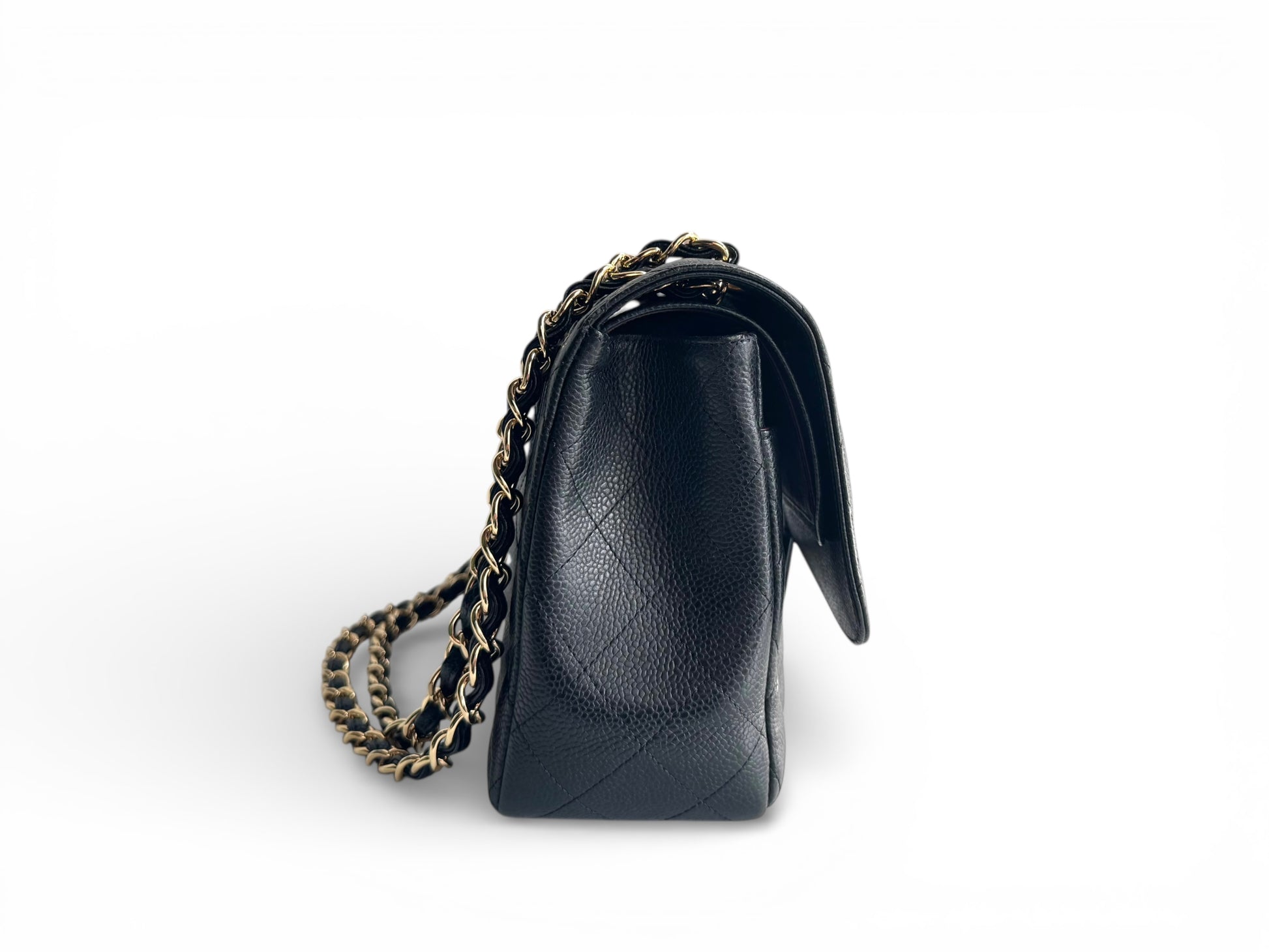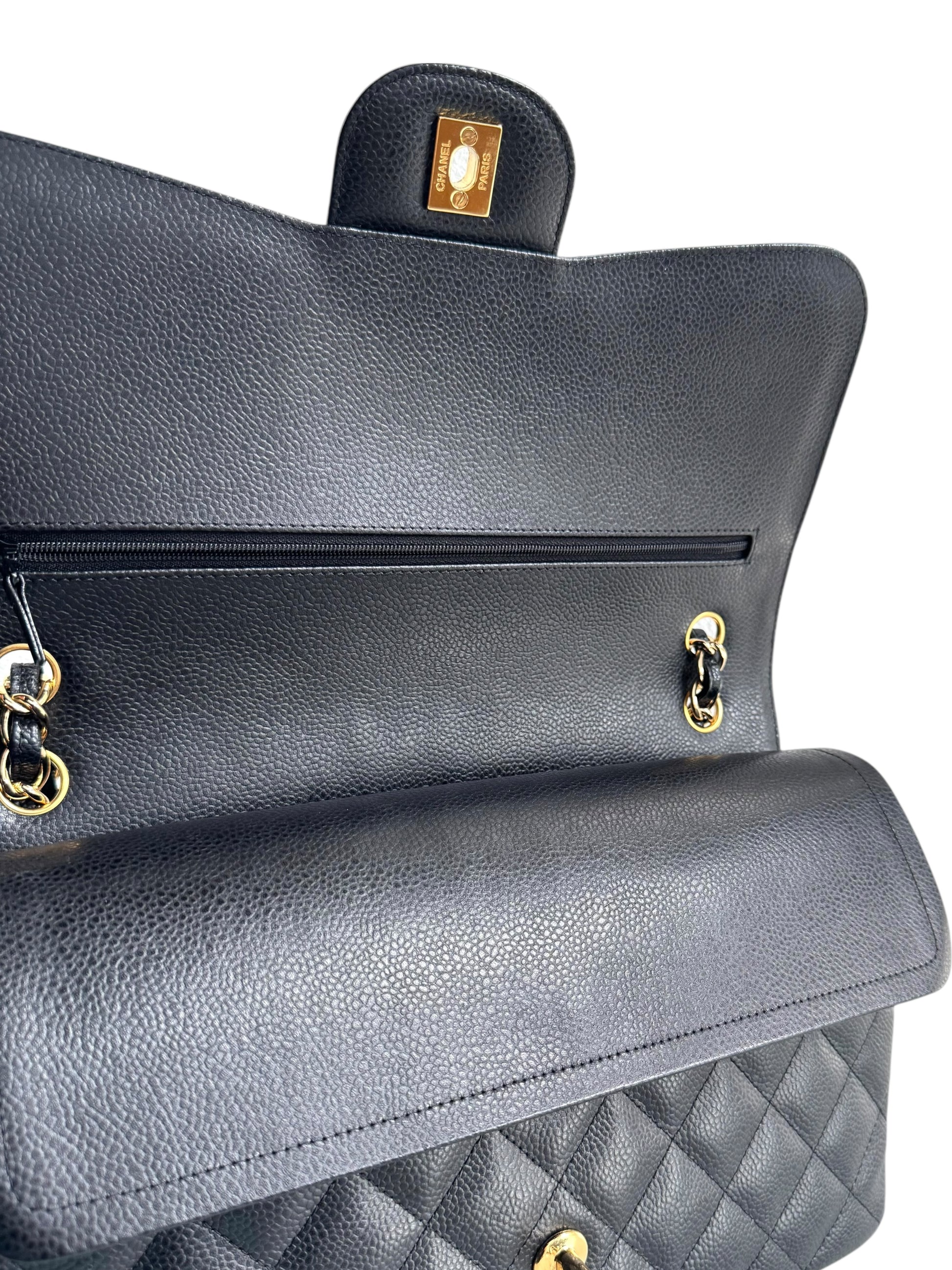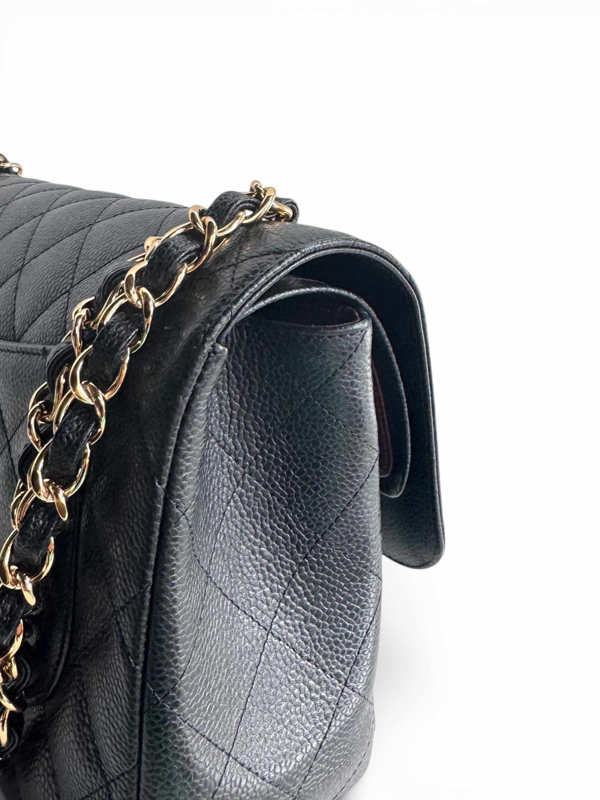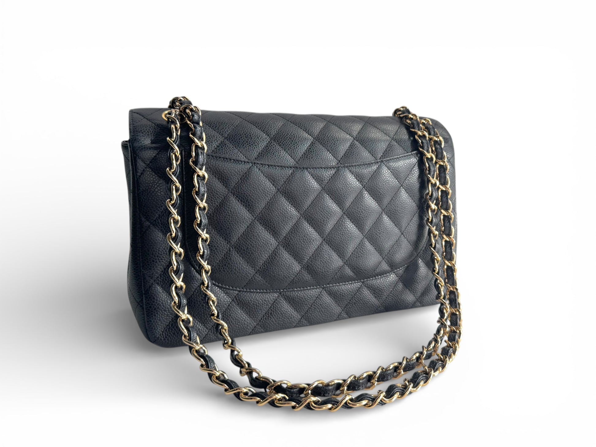 Description: This is an authentic CHANEL Classic Jumbo Double Flap bag in timeless black caviar leather.
