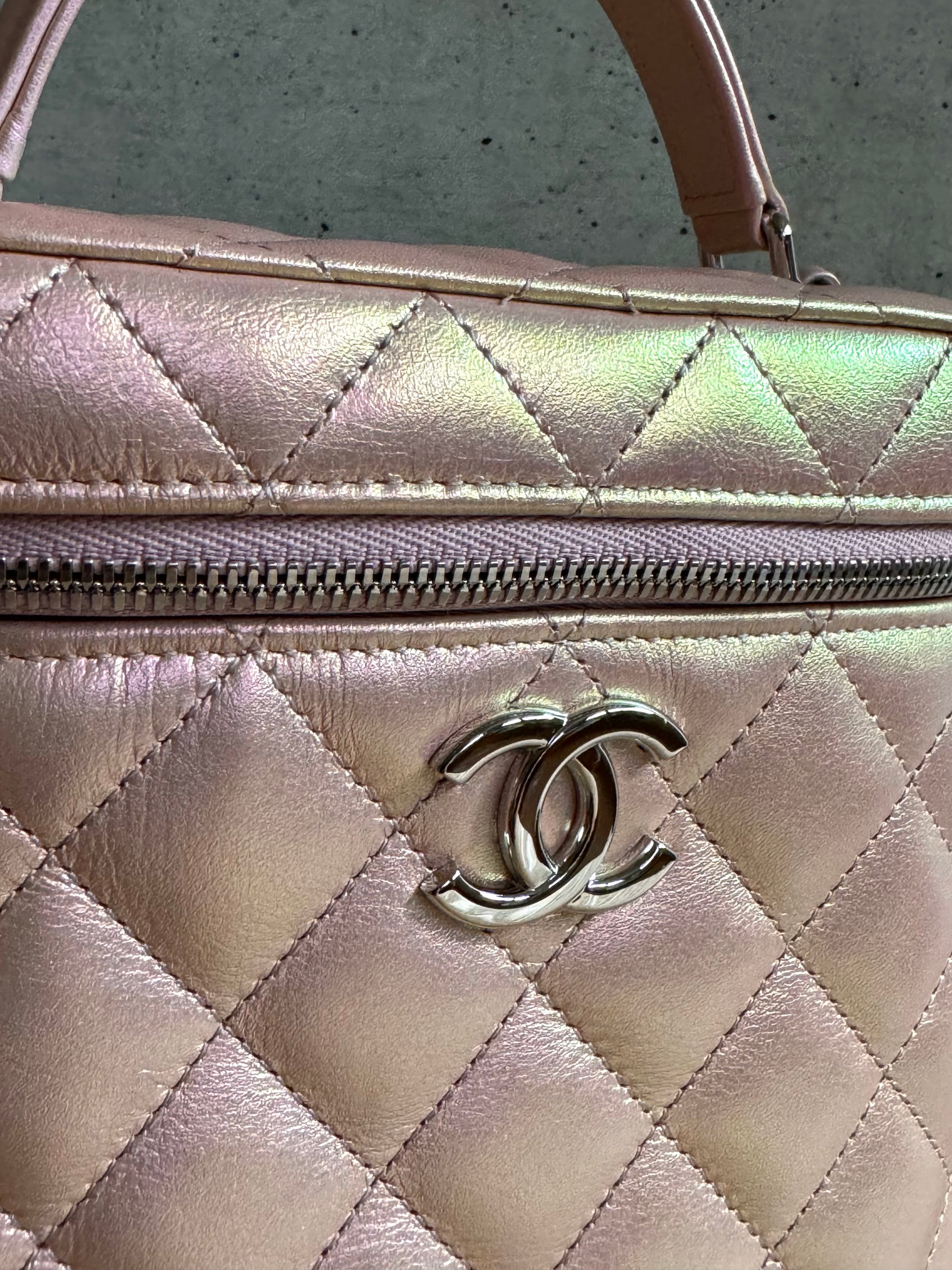 CHANEL Iridescent Calfskin Quilted Small Top Handle Vanity Case With Chain