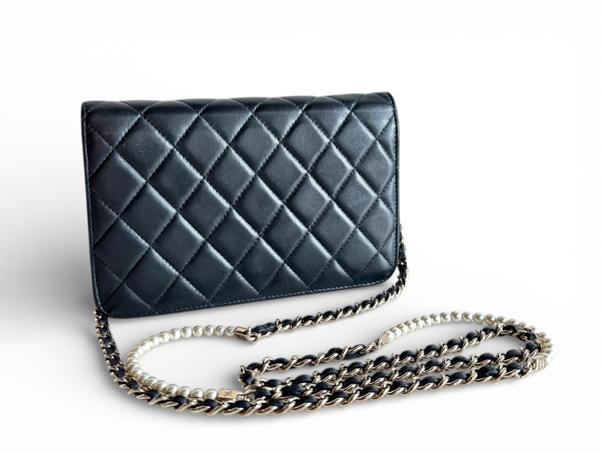 CHANEL Lambskin Pearl Strap Wallet on Chain WOC