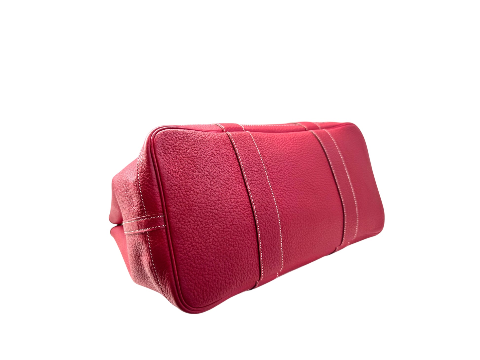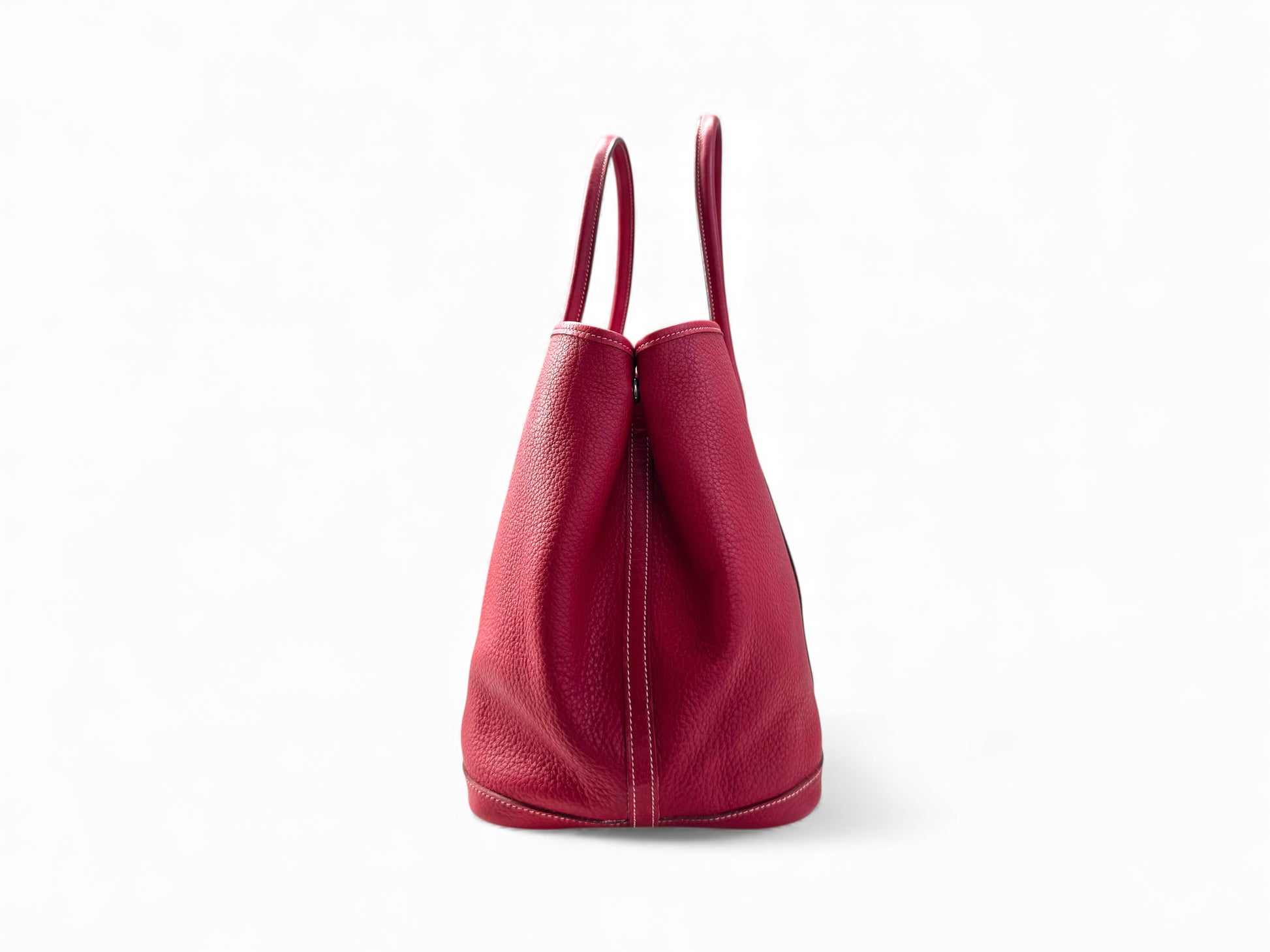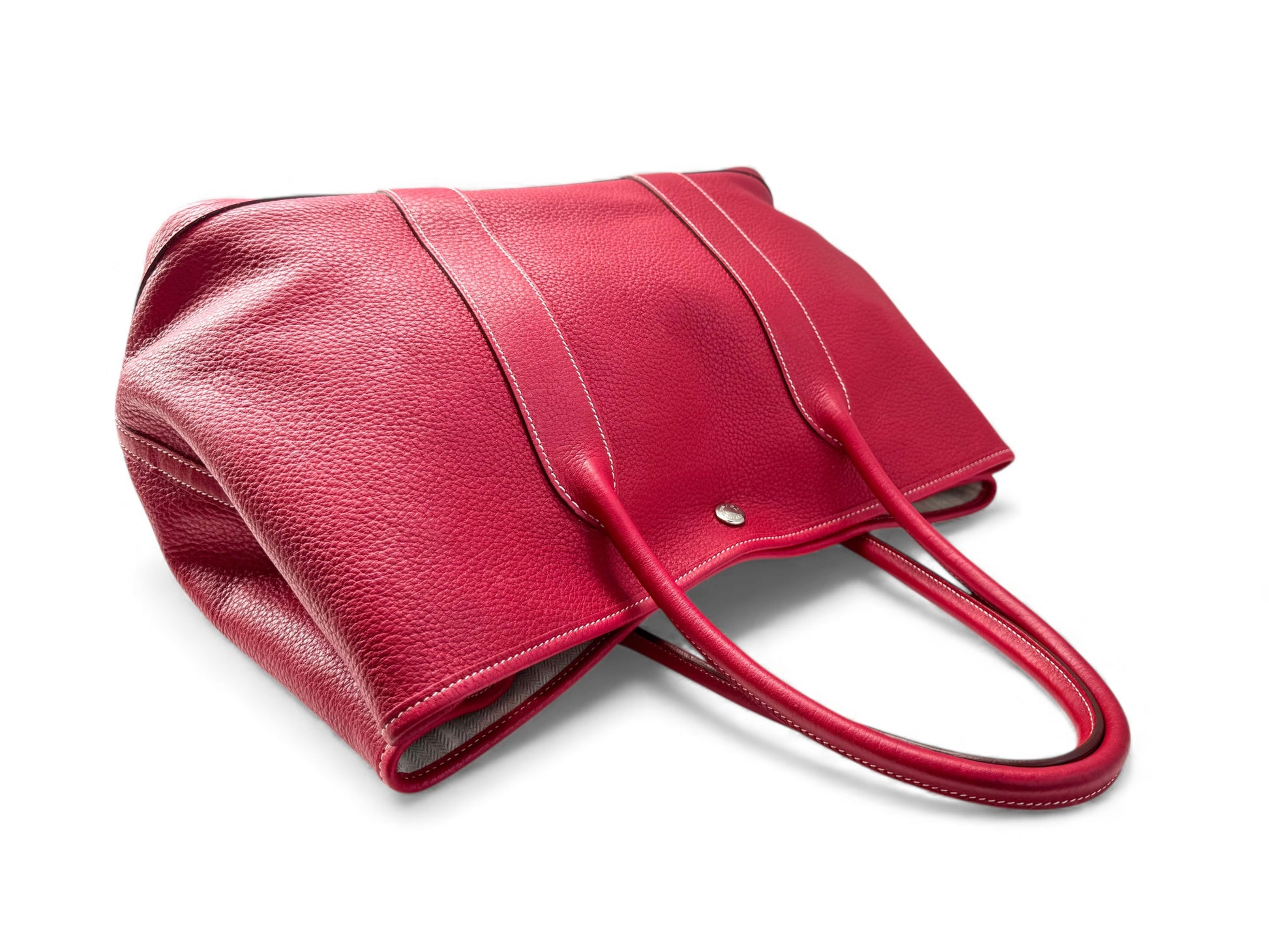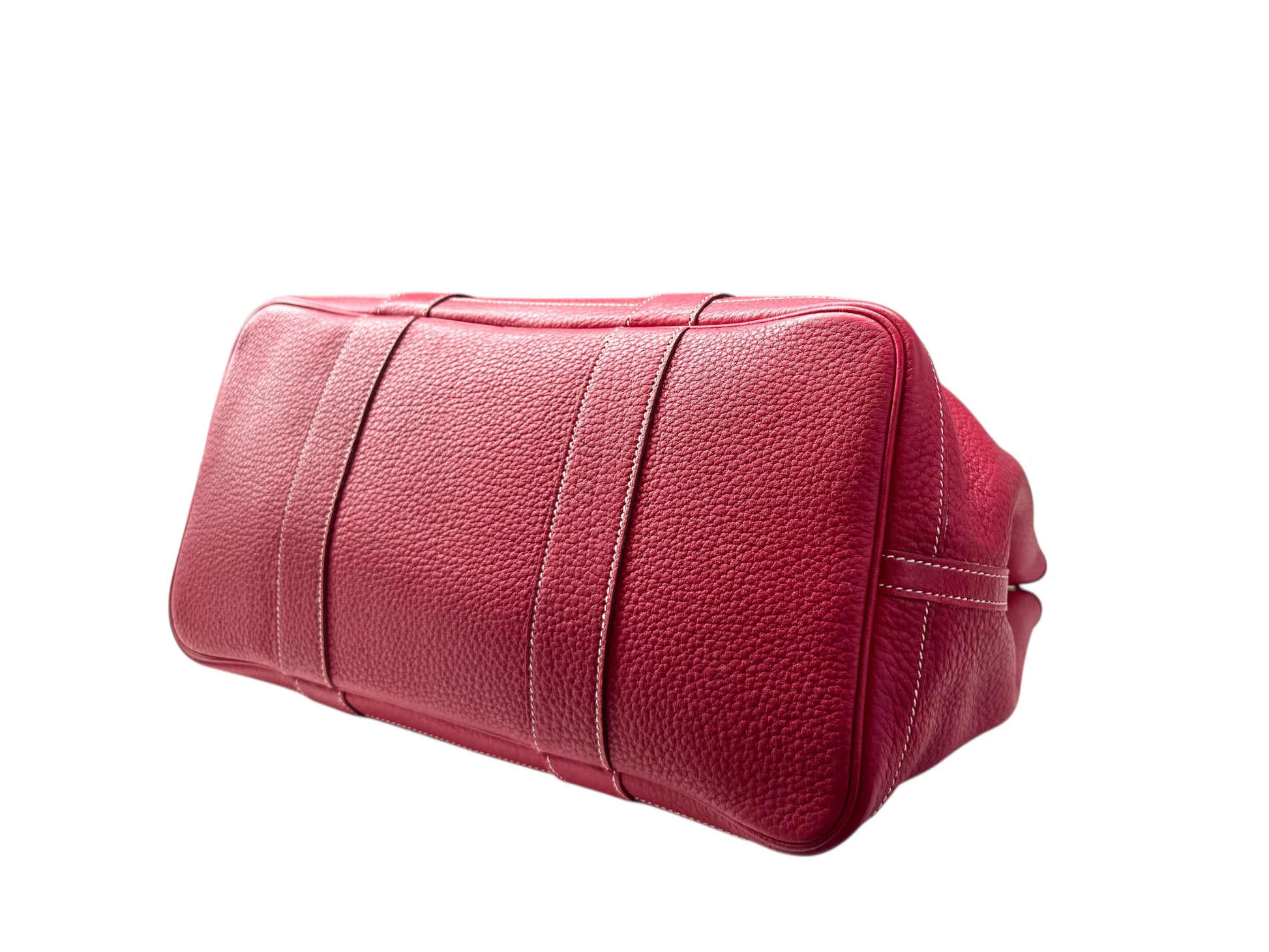 Description: This is an authentic HERMÈS Negonda Garden Party 36 in Rouge Casaque. This elegant tote is crafted from richly textured red calfskin. It features expandable side panels and matching leather accents that form the rolled top handles. The top can be unsnapped to reveal a roomy interior lined with herringbone fabric and equipped with a large zip pocket for added convenience.