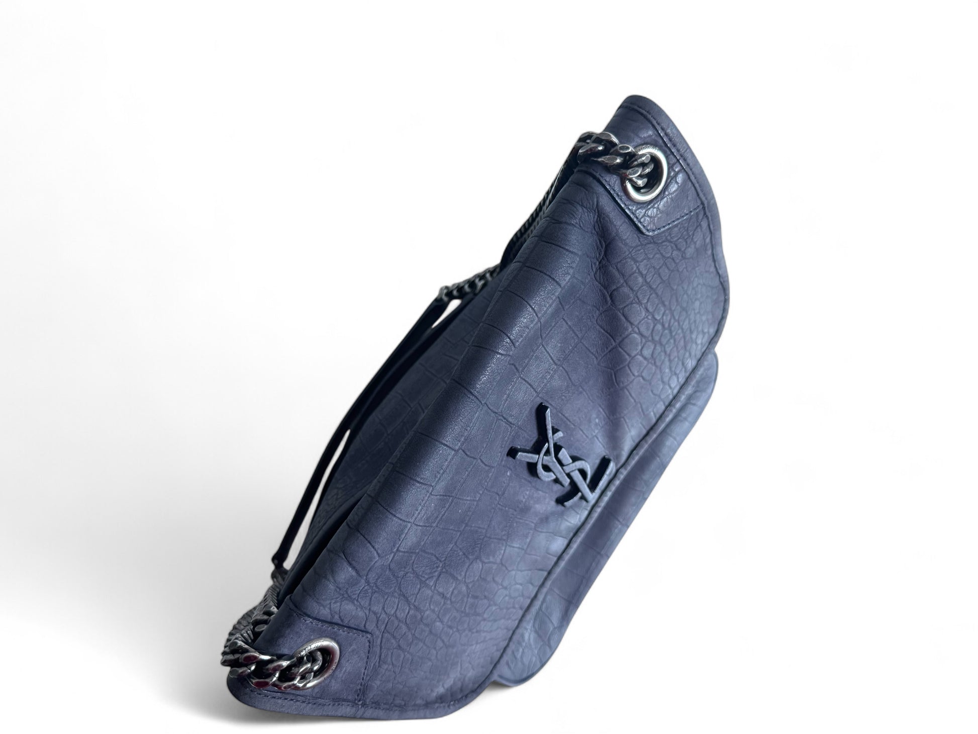 SAINT LAURENT Croc Embossed Nubuck Medium Nikki Bag
