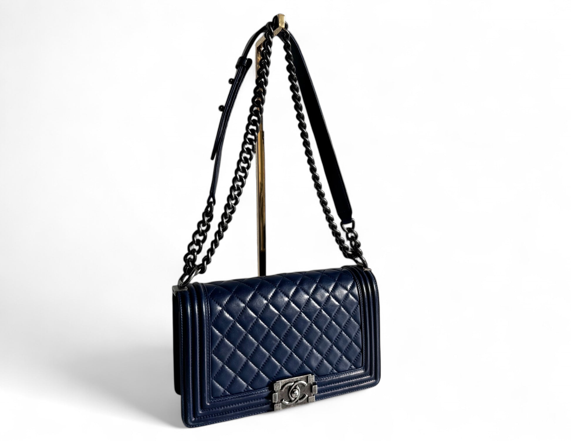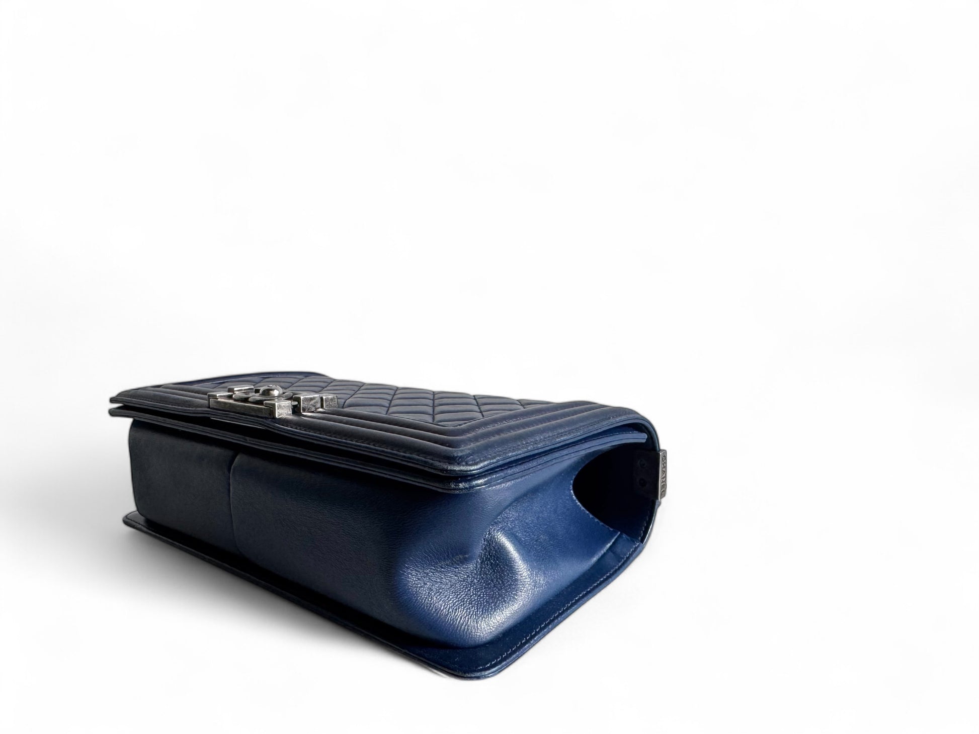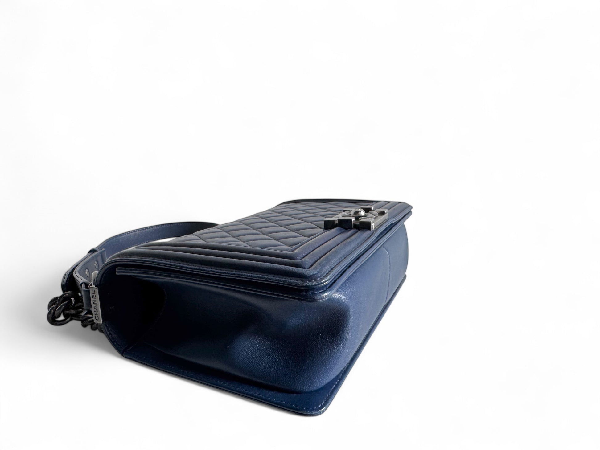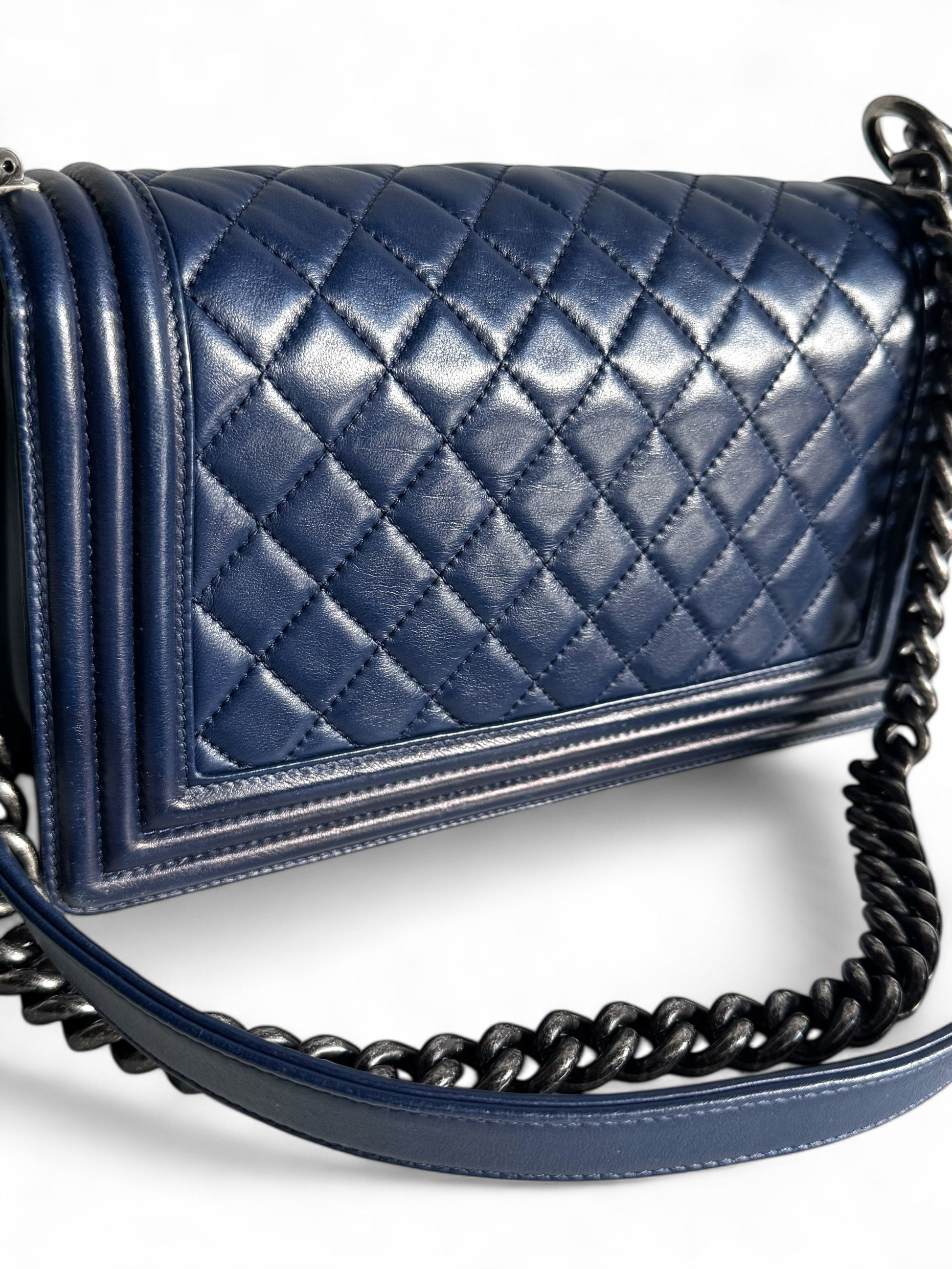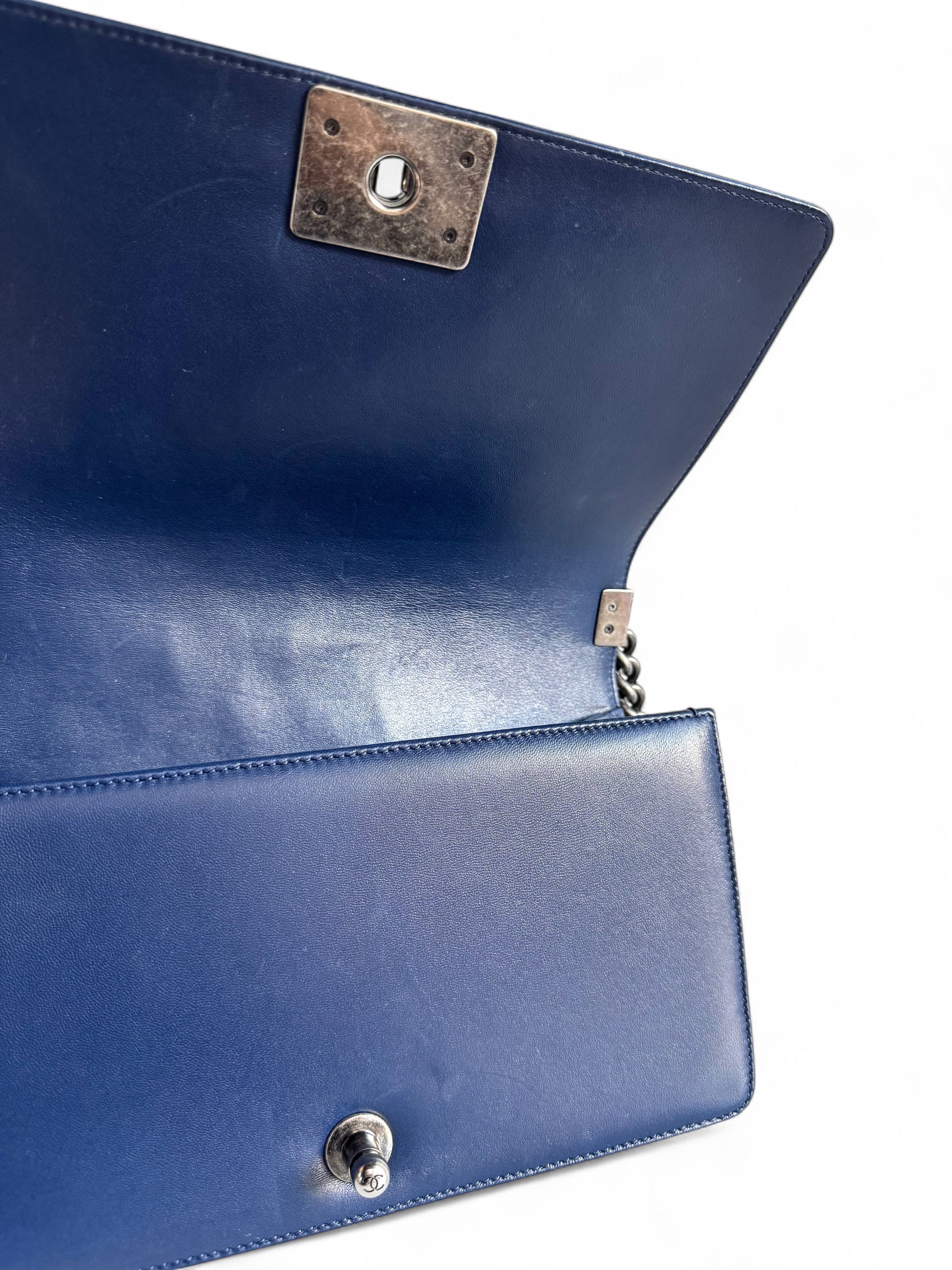 CHANEL Blue Quilted Lambskin Leather Medium Boy Bag